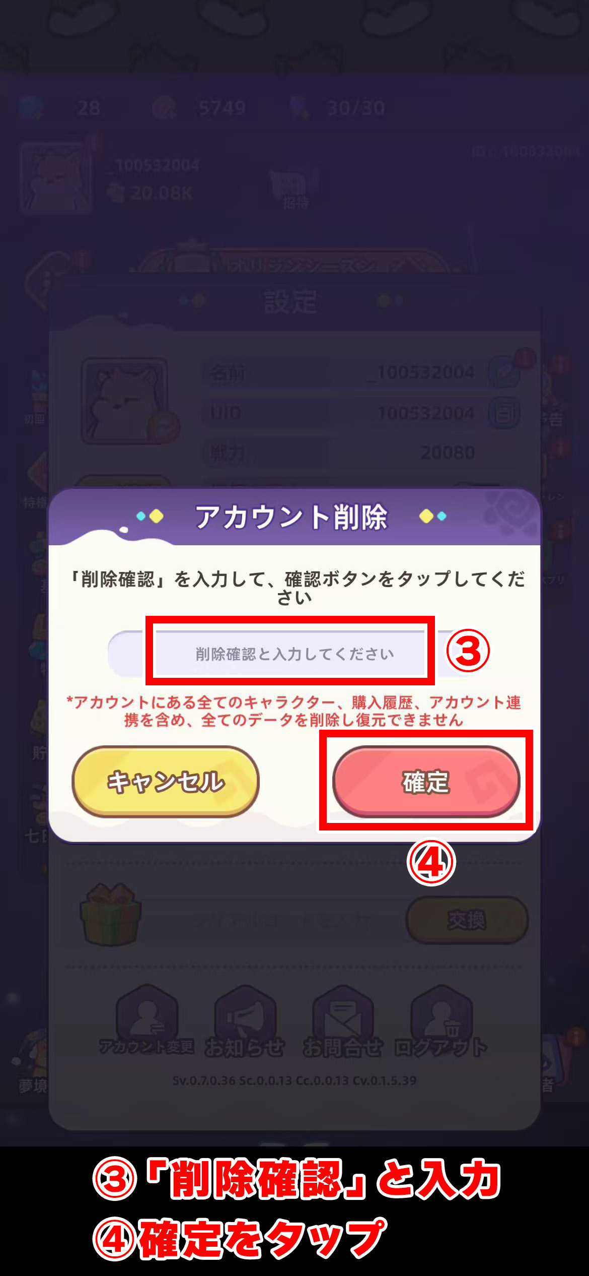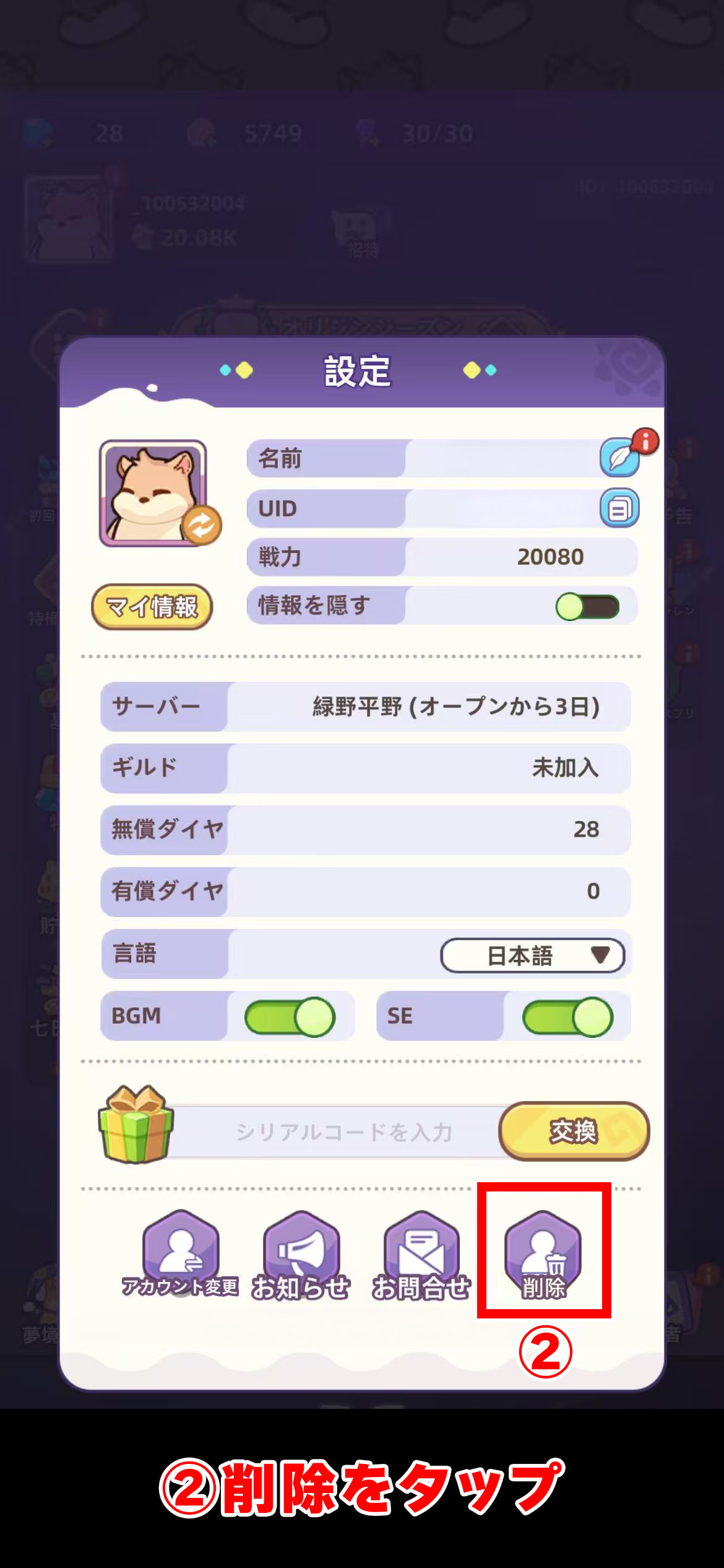 アカウント削除方法